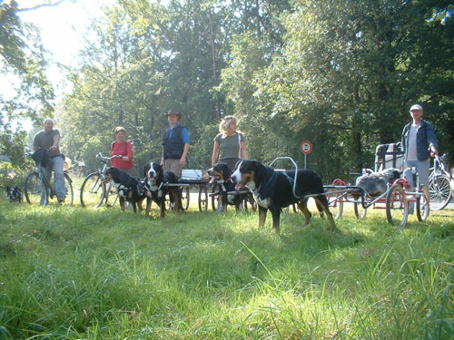 Zur Zeit starten wir um 10:00 Uhr mit dem Zughundetraining bzw. Mit einer Runde durch den Park und Wald in Treptow. Hierbei sind wir mit Hundewagen und Saccocard unterwegs, aber auch mit Fahrrad und Hund. Wir halten zwischendurch zum Picknick, aber fahren auch gezielte Übungen, um die Geschicklichkeit der Hunde mit dem Wagen zu fördern, sowie die Teamarbeit Hund-Mensch bei der Lenkung der Gefährten.