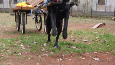 im Vordergrund wird geöffnet, dabei muss der Hund mit Kutsche
